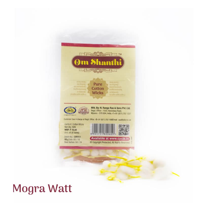 OM SHANTI Pure Cotton Wicks Mogra are crafted from high-quality cotton, ensuring a clean and steady burn. Ideal for use in oil lamps and incense holders, these wicks enhance the fragrance release of mogra, creating a serene and calming atmosphere. Their pure cotton composition minimizes smoke and residue, promoting a safer and more enjoyable experience during your rituals or meditation sessions.