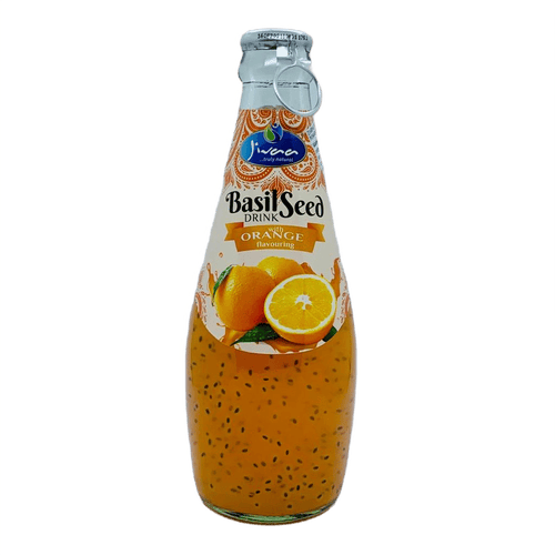 JIVAA Basil Seed Drink with Orange Flavour combines the refreshing zest of orange with the natural benefits of basil seeds. This beverage offers a unique texture and a hydrating experience, enriched with antioxidants and fiber from basil seeds. Ideal for those seeking a flavorful, health-conscious drink that supports digestion and promotes overall wellness.
