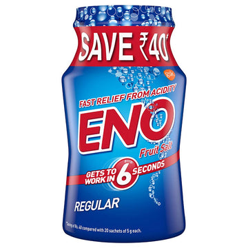 Eno Fruit Salt 100g is a trusted remedy from India’s leading antacid brand, designed to provide fast and effective relief from common digestive discomforts. It helps neutralize excess stomach acid, alleviating symptoms such as acidity, heartburn, acid indigestion, sour stomach, and upset stomach. This formulation works quickly to restore digestive balance, making it an essential solution for those experiencing occasional gastric distress. Easy to use and fast-acting, Eno Fruit Salt supports digestive comfort and helps you get back to your day without discomfort.