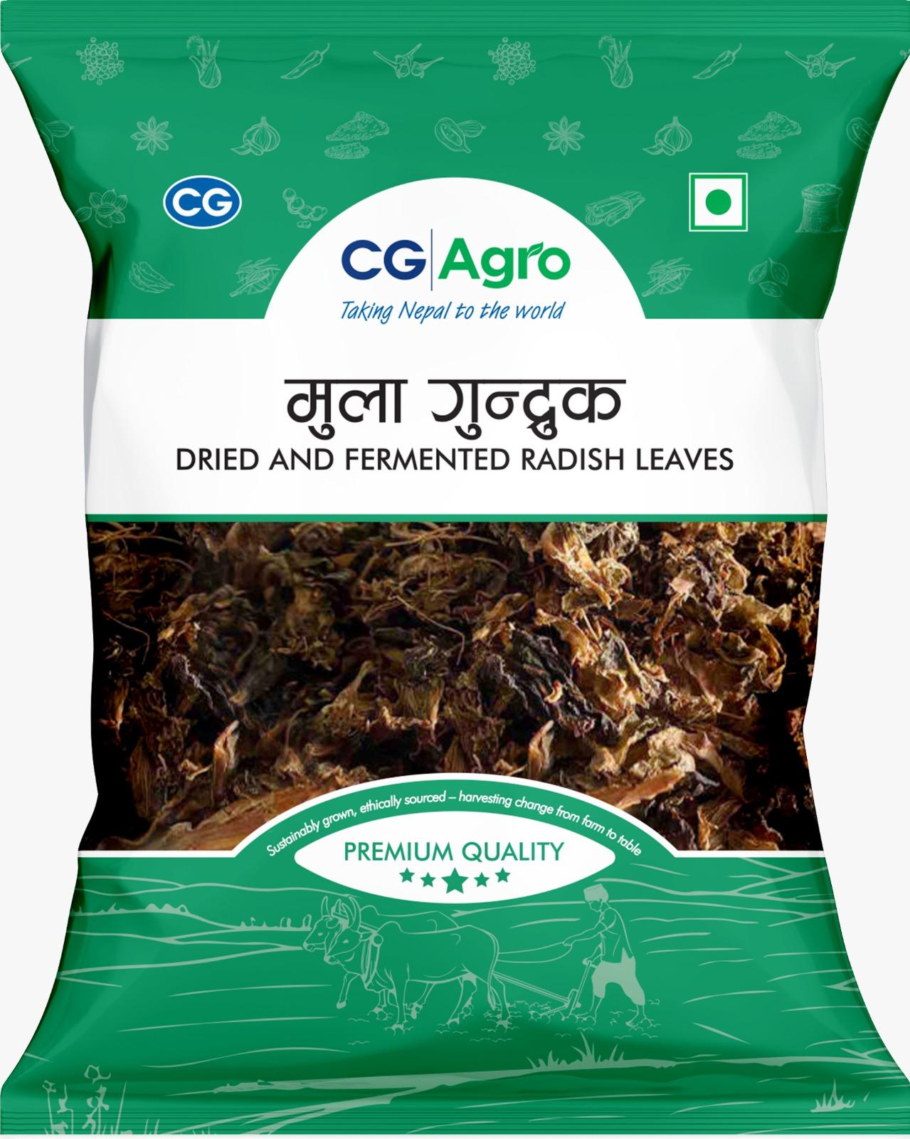 CG Group Mula Gundruk is a classic Nepali fermented delicacy, made from sun-dried radish leaves prepared through a traditional fermentation process. Rich in probiotics, fiber, and natural minerals, this wholesome food has been a Himalayan household favorite for generations, known for its distinct tangy aroma and earthy taste.