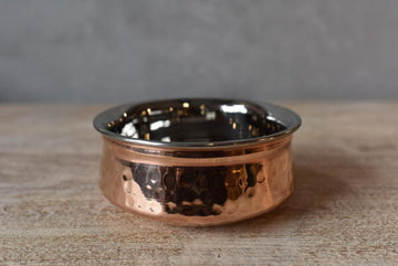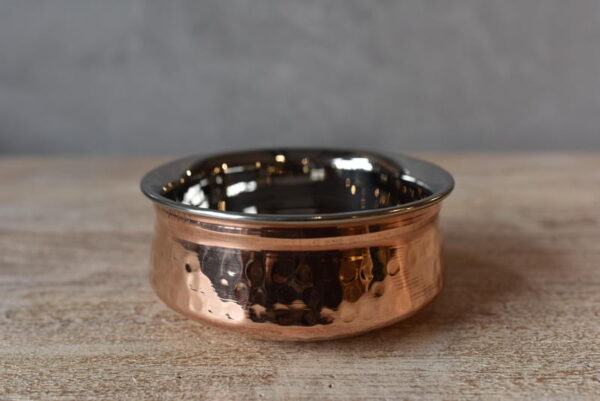 Miedziane naczynie Indian Handi zostało zaprojektowane z myślą o autentycznym gotowaniu i charakteryzuje się doskonałą przewodnością cieplną, umożliwiającą równomierną kontrolę temperatury. Miedziana konstrukcja gwarantuje trwałość i podkreśla smak tradycyjnych, wolno gotowanych potraw. Idealne do przygotowywania bogatych curry i gulaszy, naczynie to łączy funkcjonalność z ponadczasowym, eleganckim wyglądem, czyniąc je niezbędnym narzędziem zarówno dla prawdziwych kucharzy domowych, jak i profesjonalistów.