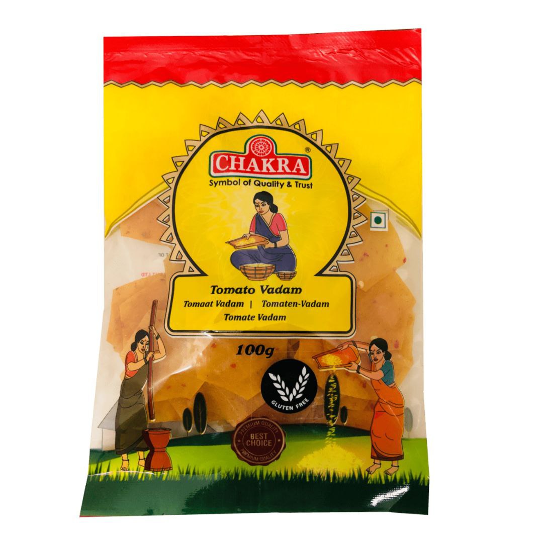 Chakra Tomato Vadam 200g offers a crisp and flavorful snack infused with the rich taste of ripe tomatoes. Perfectly thin and crunchy, this traditional South Indian delicacy provides a satisfying texture and a burst of tangy tomato flavor. Ideal for pairing with meals or enjoying on its own, it delivers an authentic taste experience crafted with quality ingredients.